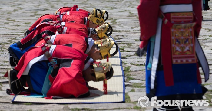 | △ 문무백관 '국궁 사배' |