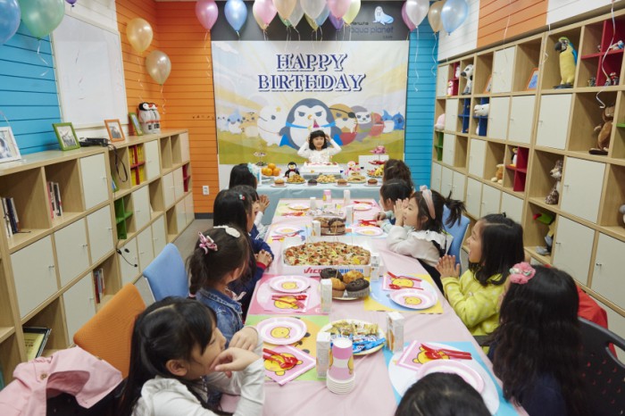 최대 20명까지 이용 가능한 파티 룸은 알록달록 풍선들과 테이블이 준비돼 있으며, 생일 축하 캐릭터 현수막으로 장식을 했다. 단, 아이들이 먹을 간식은 별도의 준비가 필요하다.