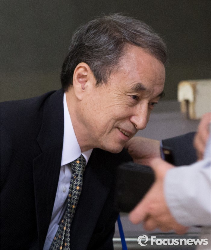 (서울=포커스뉴스) 신현우 전 옥시레킷벤키저(현 RB코리아) 대표가 9일 오전 서울중앙지방검찰청으로 들어서다 출입문에 무릎을 부딪히자 멋쩍은 웃음을 짓고 있다.