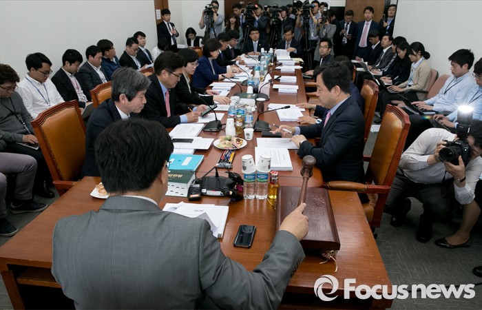 (서울=포커스뉴스) 9일 오전 서울 여의도 국회에서 권성동 소위원장 주재로 열린 환경노동위원회 법안심사소위원회에 참석한 여야 의원들이 법안 심사를 하고 있다. 이날 환노위 법안소위는 가습기살균제의 흡입독성 화학물질에 의한 피해구제에 관한 법률안 및 가습기살균제피해구제법률안 등을 심사할 예정이다.