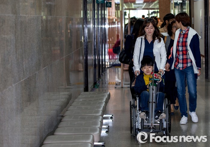 (서울=포커스뉴스) 가습기살균제 피해 가족 및 피해자들이 9일 오전 서울 여의도 국회에서 열린 '더불어민주당, 가습기살균제 대책특위 1차회의'에 참석하기 위해 회의실로 들어서고 있다.