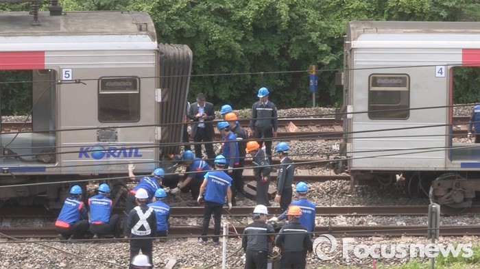 (서울=포커스뉴스) 9일 오전 서울 노량진역에서 경인선 급행열차가 탈선해, 코레일 직원들이 복구작업을 벌이고 있다. 이 사고로 구로역에서 용산역까지 5개구간 급행열차의 운행이 중단됐으며, 부상자는 없는 것으로 알려졌다. <사진=포커스뉴스 영상 캡쳐>