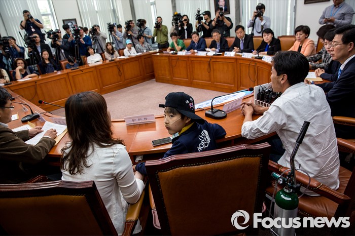 (서울=포커스뉴스) 가습기살균제 피해 가족 및 피해자들이 9일 오전 서울 여의도 국회에서 열린 '더불어민주당, 가습기살균제 대책특위 1차회의'에 참석해 각자의 의견을 전달 하고 있다.