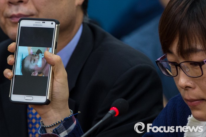 (서울=포커스뉴스) 9일 오전 서울 여의도 국회에서 열린 '더불어민주당, 가습기살균제 대책특위 1차회의'에 참석한 가습기살균제 피해 가족이 발언을 하고 있다.