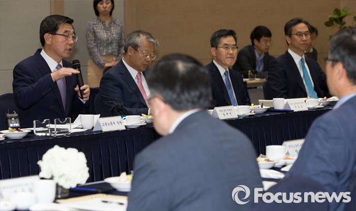 (세종=포커스뉴스) 이기권(왼쪽) 고용노동부 장관이 9일 오후 세종시 정부세종컨벤션센터에서 열린 노동시장 전략회의에 참석해 회의를 주재하고 있다.