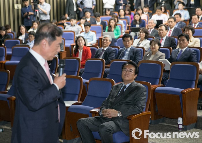(서울=포커스뉴스) 정진석 새누리당 원내대표 등 참석자들이 9일 오후 서울 여의도 국회에서 열린 20대 총선 당선자 총회에 참석해 노무현 정부 청와대 정책실장을 지낸 김병준 국민대 교수의 특강을 듣고 있다.