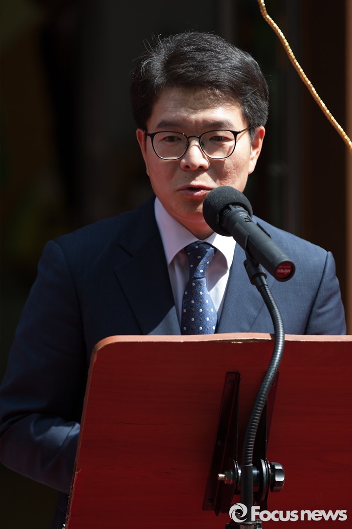 (서울=포커스뉴스) 9일 오후 서울 성동구 송정햇살어린이집에서 열린 서울시 1000번째 국공립어린이집 개원식에서 정원오 성동구청장이 인사말을 하고 있다.