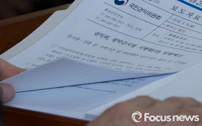 (세종=포커스뉴스) 성영훈 국민권익위원장이 9일 오후 세종시 정부세종청사 공용브리핑룸에서 오는 9월 28일 시행 예정인 '부정청탁 및 금품 등 수수의 금지에 관한 법률'(김영란법)에 대한 입법예고 설명을 하고 있다.