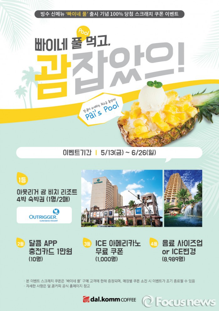 다날은 빠이네풀 빙수 출시를 기념해, 13일부터 다음달 12일까지 메뉴 이용객 모두를 대상으로 100% 당첨 스크래치 증정 행사를 한다. 경품은 괌 아웃리거 리조트 숙박권을 비롯해 달콤앱 1만원 충전권, 아이스아메리카노 무료 쿠폰 등이다.