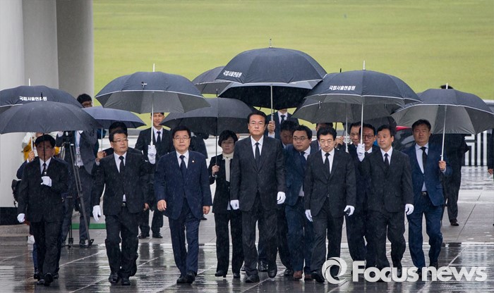 (서울=포커스뉴스) 10일 오전 서울 동작구 국립현충원을 찾은 정진석 새누리당 신임 원내대표와 김광림 신임 정책위의장이 분향단으로 발걸음을 옮기고 있다.