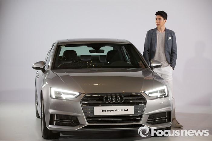 (서울=포커스뉴스) 10일 오전 서울 중구 반얀트리 클럽 앤 스파에서 모델들이 준중형 세단 '뉴 아우디 A4'를 선보이고 있다. '뉴 아우디 A4'는 기존 모델보다 무게가 최대 100kg까지 감량, 최고 출력 252마력, 최대 토크 38.0kg·m, 연비는 복합연비 기준 11.6km이다.