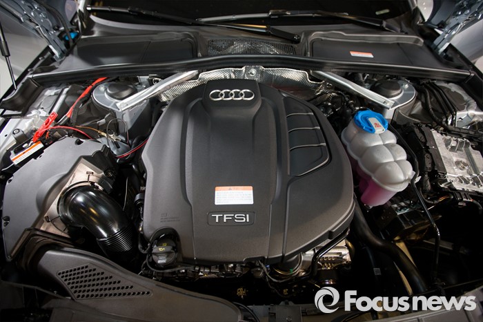 (서울=포커스뉴스) 10일 오전 서울 중구 반얀트리 클럽 앤 스파에서 아우디 코리아가 선보인 준중형 세단 '뉴 아우디 A4'의 엔진.