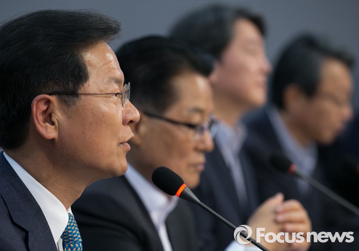 (서울=포커스뉴스) 천정배(왼쪽 첫번째) 국민의당 공동대표가 10일 오전 서울 여의도 국회 의원회관에서 열린 당선자 총회 및 3차 집중워크숍에 참석해 모두발언을 하고 있다.