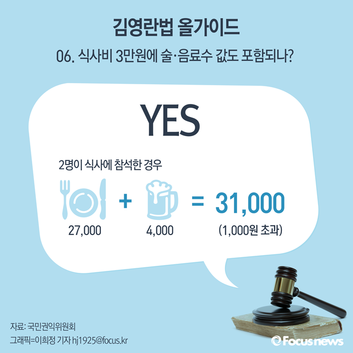 | △ [그래픽] 김영란법 올가이드 06. 식사비 3만원에 술·음료수 값도 포함되나? |
