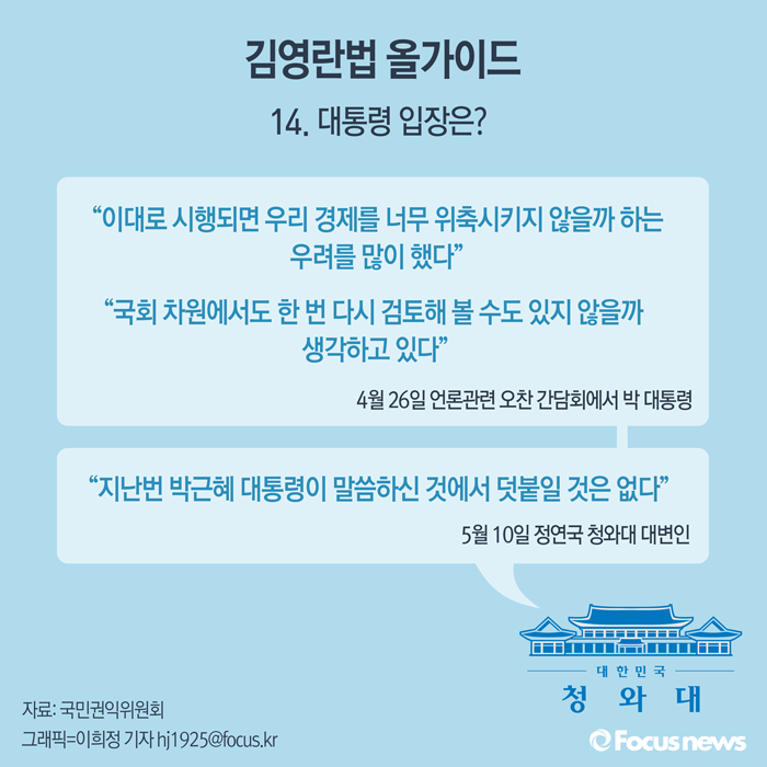 | △ [그래픽] 김영란법 올가이드 14. 대통령 입장은? |