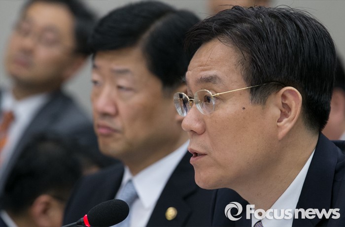 (서울=포커스뉴스) 10일 오후 서울 여의도 국회에서 열린 산업통상자원위원회 전체회의에 참석한 이관섭 산업통상자원부 1차관이 백재현 더불어민주당 의원의 옥시 관련 한국건설생활환경시험연구원(KCL) 보고서 질의에 답하고 있다.