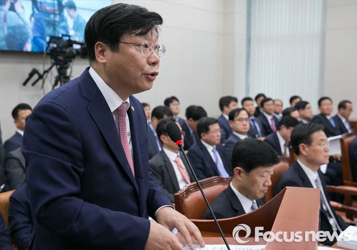 (서울=포커스뉴스) 10일 오후 서울 여의도 국회에서 열린 산업통상자원위원회 전체회의에 참석한 주형환 산업통상자원부 장관이 통상 관련 현안보고를 하고 있다.