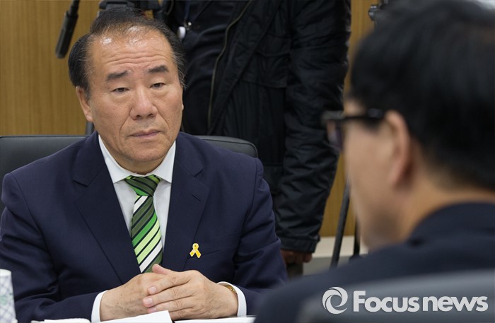 (세종=포커스뉴스) 장휘국(왼쪽) 광주광역시교육감이 10일 오후 세종시 정부세종청사 교육부 중회의실에서 열린 전국시도교육감협의회 회장단 간담회에 참석해 이준식 사회부총리 겸 교육부장관의 발언을 경청하고 있다.