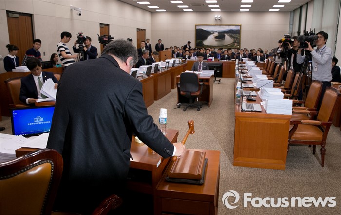 (서울=포커스뉴스) 10일 오후 서울 여의도 국회에서 열린 농림축산식품해양수산위원회 전체회의에 참석한 김우남 위원장이 개의 선언을 하고 있다. 이날 회의는 세월호 특별법 개정안 내용 중 특조위 활동 기간 연장과 관련 이견으로 여당 의원들이 불참한 채 진행됐다.