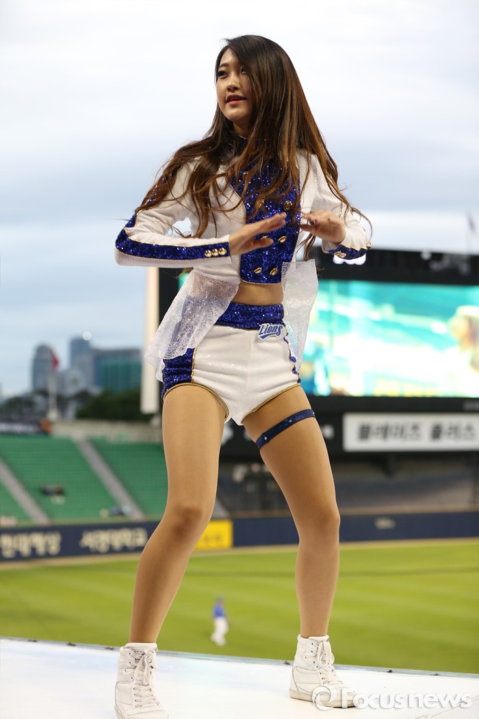(서울=포커스뉴스) 10일 서울 잠실구장에서 열린 2016 프로야구 삼성-LG 경기에서 삼성 치어리더가 승리를 부르는 손짓으로 관중들의 응원을 유도하고 있다.