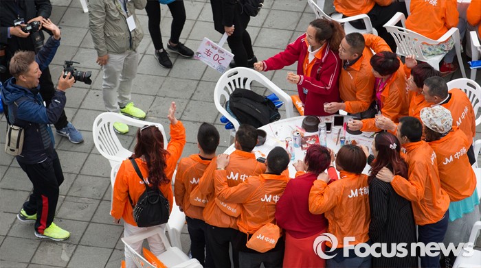(서울=포커스뉴스) 10일 오후 서울 서초구 반포한강공원에서 중국 건강보조제품 회사 중마이과기발전유한공사 소속 임직원들이 삼계탕 만찬 전 기념촬영을 하고 있다.