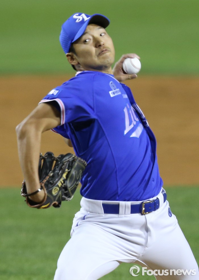 (서울=포커스뉴스) 10일 서울 잠실구장에서 열린 2016 프로야구 삼성-LG 경기에서 삼성 투수 백정현이 5회말 1사 만루에서 선발 김기태를 구원 등판해 투구하고 있다.