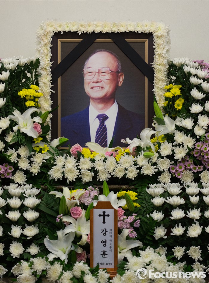 (서울=포커스뉴스) 10일 오후 서울 송파구 서울아산병원 장례식장에 마련된 故 강영훈 전 국무총리의 빈소에 고인의 영정이 놓여있다.