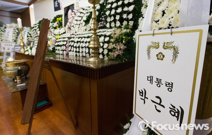 (서울=포커스뉴스) 10일 오후 서울 송파구 서울아산병원 장례식장에 마련된 故 강영훈 전 국무총리의 빈소에 박근혜 대통령이 보낸 근조화환이 놓여 있다.