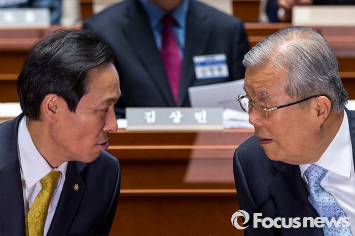 | △ 대화 나누는 김종인 대표-우상호 원내대표 |