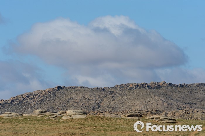 (바가 가즈링 촐로/몽골=포커스뉴스) 바가 가즈링 산의 성벽처럼 둘러싼 화강암위로 버섯구름이 솟아오르고 있다.