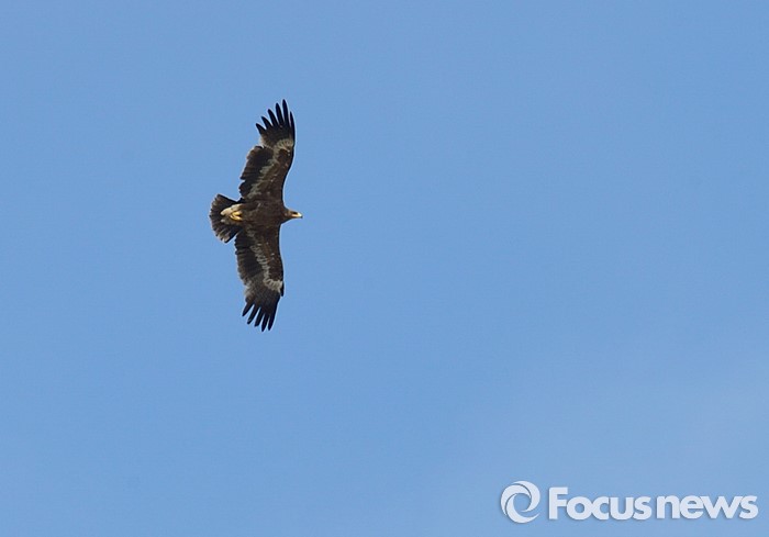 (바가 가즈링 촐로/몽골=포커스뉴스)초원수리가 바가 가즈링 촐로의 푸른 하늘을 선회하고 있다.