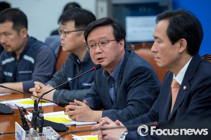 (서울=포커스뉴스) 김문호 전국금융산업노동조합 위원장이 11일 오전 서울 여의도 국회에서 열린 '더불어민주당-전국금융산업노조 간담회'에서 모두발언 하고 있다.