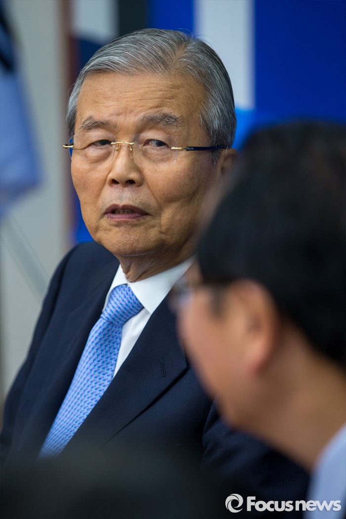 (서울=포커스뉴스) 김종인(왼쪽) 더불어민주당 비상대책위 대표와 린더푸 대만-한 의원친선협회장이 11일 오전 서울 여의도 국회에서 면담 하고 있다.