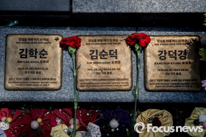 (서울=포커스뉴스) 11일 오후 서울 종로구 옛 주한일본대사관 앞에서 한국정신대문제대책협의회와 학생들이 '일본군 위안부 문제해결을 위한 정기 수요시위'를 하고 있다.