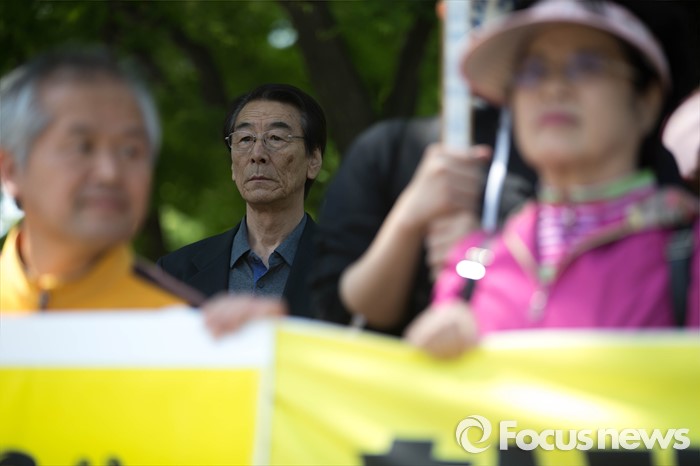 (서울=포커스뉴스) 11일 오전 서울 관악구 서울대학교 앞에서 사시존치를위한고시생모임 회원들의 교육부 전수조사 결과 발표를 규탄 시위를 한 시민이 지켜보고 있다.