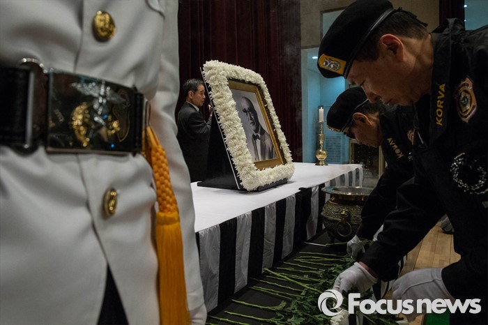 (서울=포커스뉴스) 11일 오전 서울 동작구 국립현충원에서 열린 '철기 이범석 장군 제44주기 추모제' 참석자들이 헌화 및 분향하고 있다.