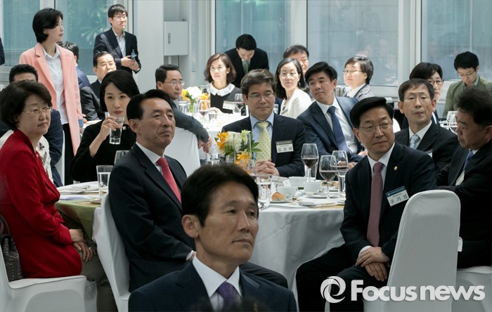 (서울=포커스뉴스) 11일 오후 서울 여의도 국회 의원회관에서 열린 20대 국회 초선의원 의정연찬회 오찬에 참석한 당선인들이 정의화 국회의장의 오찬사를 듣고 있다.