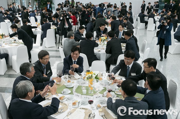 (서울=포커스뉴스) 11일 오후 서울 여의도 국회 의원회관에서 열린 20대 국회 초선의원 의정연찬회 오찬에 참석한 당선인들이 건배를 하고 있다.