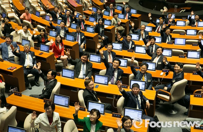 (서울=포커스뉴스) 11일 오후 서울 여의도 국회 본회의장을 방문한 20대 국회 초선 당선인들이 전자투표 시연 교육 등을 받은 뒤 취재진의 요청으로 손을 흔들고 있다.