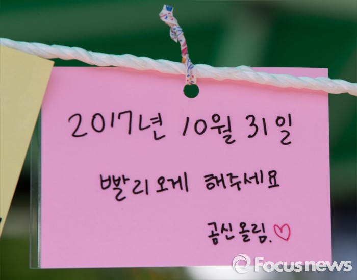 (대전=포커스뉴스) 대학축제가 한창인 11일 오전 대전 대덕구 한남대학교에서 학생들이 소원나무에 적어 놓은 소원메모가 보이고 있다.