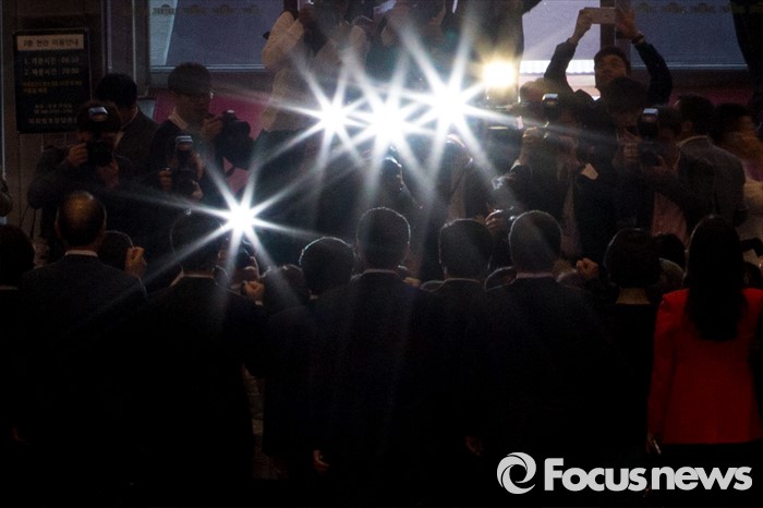 (서울=포커스뉴스) 11일 오후 서울 여의도 국회에서 20대 국회의원선거에 당선된 초선 의원들이 본회의장 체험을 마친 뒤 취재진을 향해 손을 흔들고 있다.