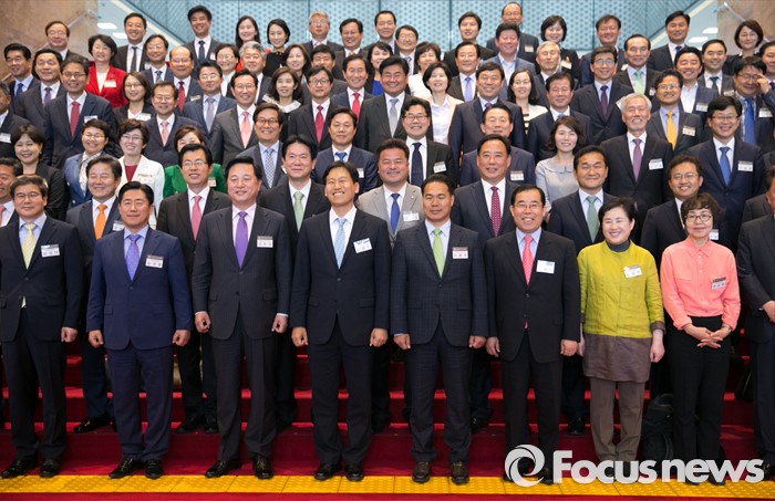 (서울=포커스뉴스) 11일 오후 서울 여의도 국회 로텐더홀 계단에서 20대 국회 초선 당선인들이 전자투표 시연 등 교육을 마친 뒤 기념촬영을 하고 있다.