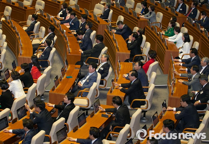 (서울=포커스뉴스) 11일 오후 서울 여의도 국회 본회의장을 방문한 20대 국회 초선 당선인들이 전자투표 시연 등 교육을 듣고 있다.