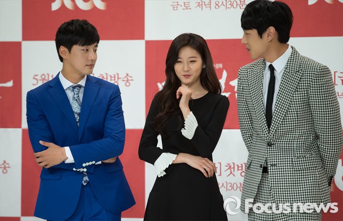 (서울=포커스뉴스) 11일 오후 서울 영등포구 타임스퀘어 아모리스홀에서 열린 JTBC 금토드라마 '마녀보감' 제작발표회에 참석한 배우 윤시윤(왼쪽부터), 김새론, 곽시양이 포토타임을 갖고 있다.