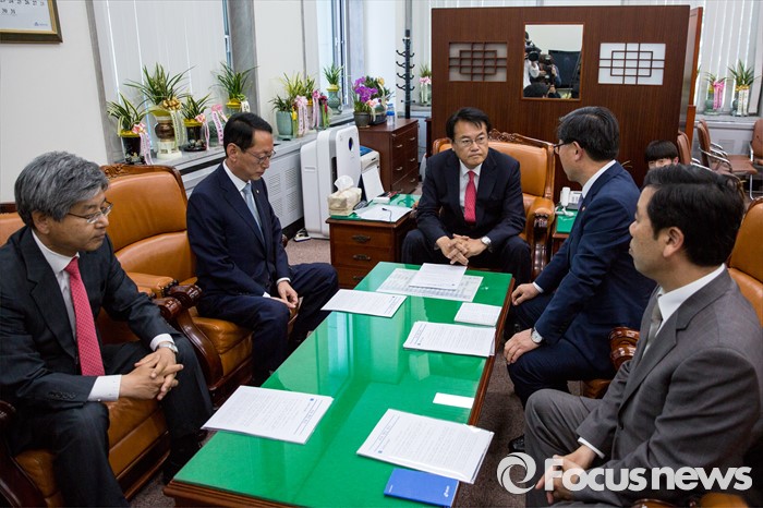 (서울=포커스뉴스) 정진석(가운데) 새누리당 원내대표가 11일 오후 서울 여의도 국회에서 이기권(오른쪽 두 번째) 고용노동부 장관에게 노동개혁 관련 주요 현안 보고를 받고 있다.
