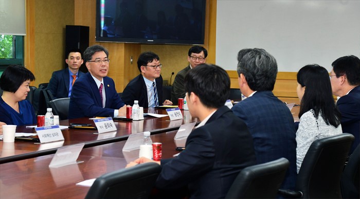 (서울=포커스뉴스) 송언석 기획재정부 차관이 직업훈련 관련 현장 점검 차 11일 서울시 서초구 소재 직업능력 개발 훈련 시설 비트교육센터를 방문해 직업훈련생 및 교육기관 관계자들과 간담회를 갖고 있다. <사진제공=기획재정부>