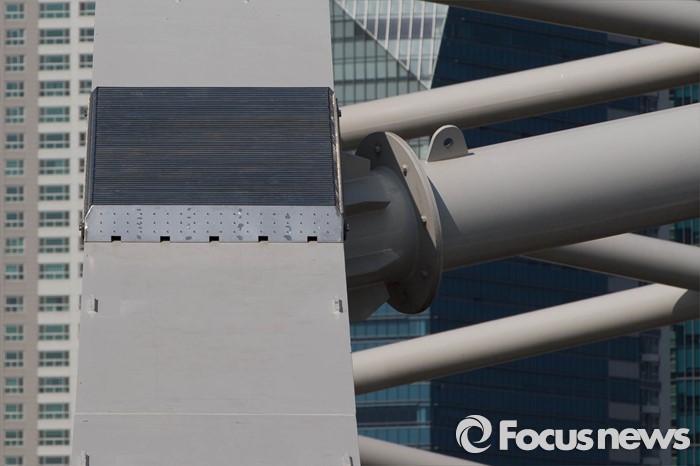(서울=포커스뉴스) 11일 오후 서울 양화대교 아치위에 고공시위, 투신자살 등을 예방하기 위해 롤러로 된 오름방지 시설물이 설치되어 있다.