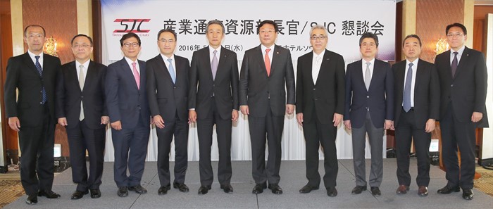 (서울=포커스뉴스) 주형환 산업통상자원부 장관이 11일 오후 서울 중구 소공동 롯데호텔에서 양국 기업간 투자분야 협력방안과 주한일본기업의 對정부 건의 해소방안 논의를 위해 열린 '서울재팬클럽(SJC) 오찬 간담회'에서 참석자들과 기념촬영 하고 있다.