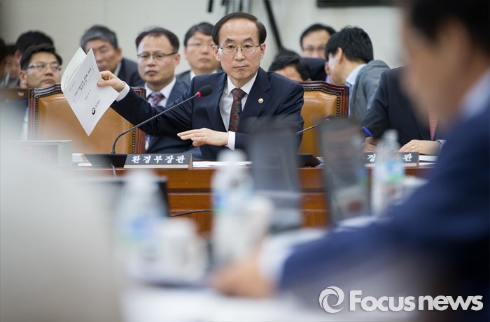 (서울=포커스뉴스) 윤성규 환경부 장관이 11일 오후 서울 여의도 국회에서 가습기 살균제 관련 현안보고 등을 위해 열린 환경노동위원회 전체회의에 참석해 의원들의 질의에 답하고 있다.