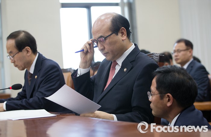 (서울=포커스뉴스) 정연만(가운데) 환경부 차관이 11일 오후 서울 여의도 국회에서 가습기 살균제 관련 현안보고 등을 위해 열린 환경노동위원회 전체회의에 참석해 관계자로부터 보고를 받고 있다.
